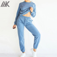 Custom Crew Neck Sweatsuits Cotton Oversized Sweat Outfits for Women-Aktik