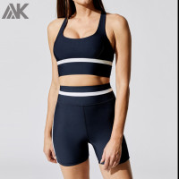 Private label custom ethical activewear manufacturer, wholesale cheap womens tall activewear biker shorts and sports bra set