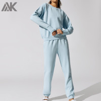 Custom Cotton Bulk Jogging Suits Women Pullover Sweatsuit Set Wholesale-Aktik