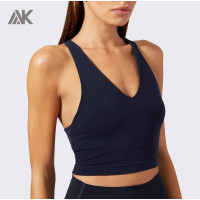 Custom V Neck Low Cut Padded Crop Top Racerback Long Sports Bra Tank Top-Aktik