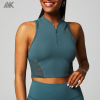 Custom Half-Zip Gym Women's Crop Tank Top With Built In Bra-Aktik