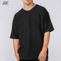 Custom Rib Cotton Men's Oversize T-shirt Ontrast Stripe Ribbed V Neckline Men Everyday Jersey-Aktik