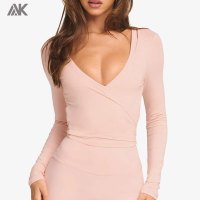 Custom Classic Styles Women's Full-length Sleeve T shirts Plunge Neckline Rayon Wrap Top-Aktik